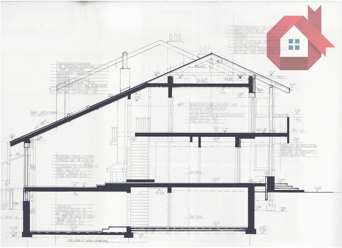 - reprezentacyjny salon (42,8 m²) - wysokość do 5 metrów, kominek, doskonałe doświetlenie