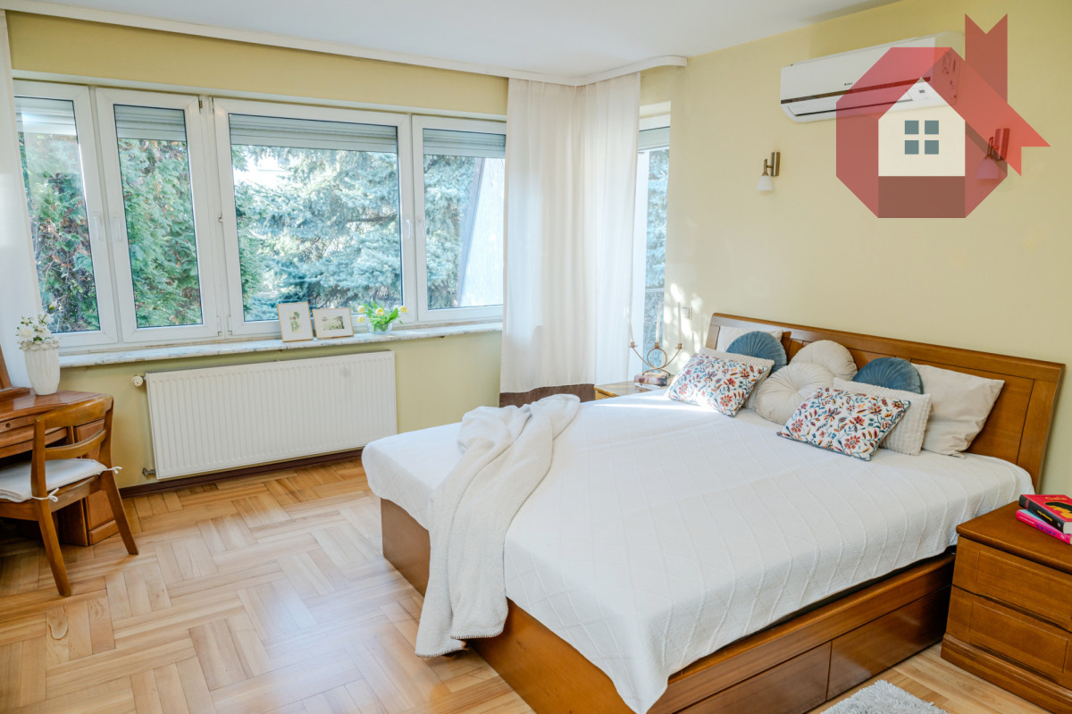 - Klimatyzowana główna sypialnia z garderobą i balkonem to Twoja prywatna oaza spokoju.