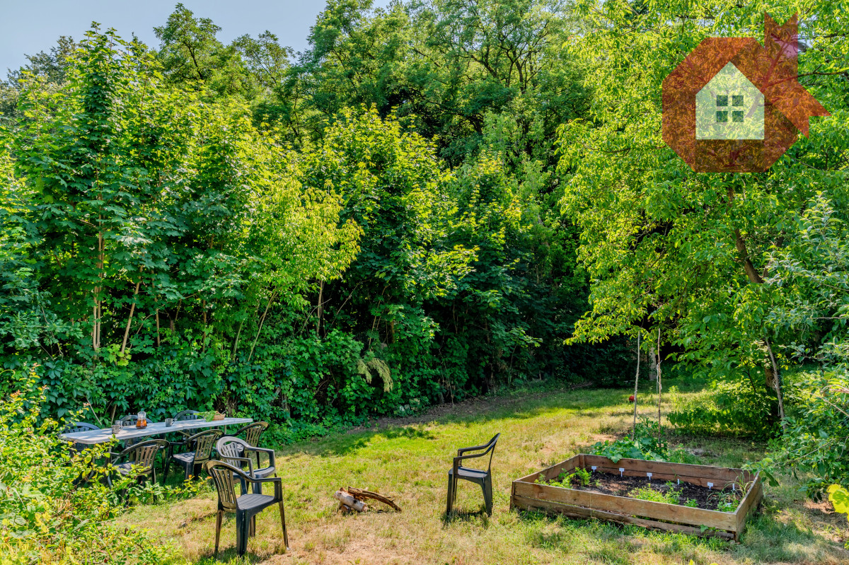 • Budynek gospodarczy, ogród z drzewami owocowymi, miejscem na grilla i rekreację.