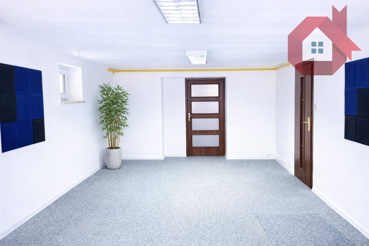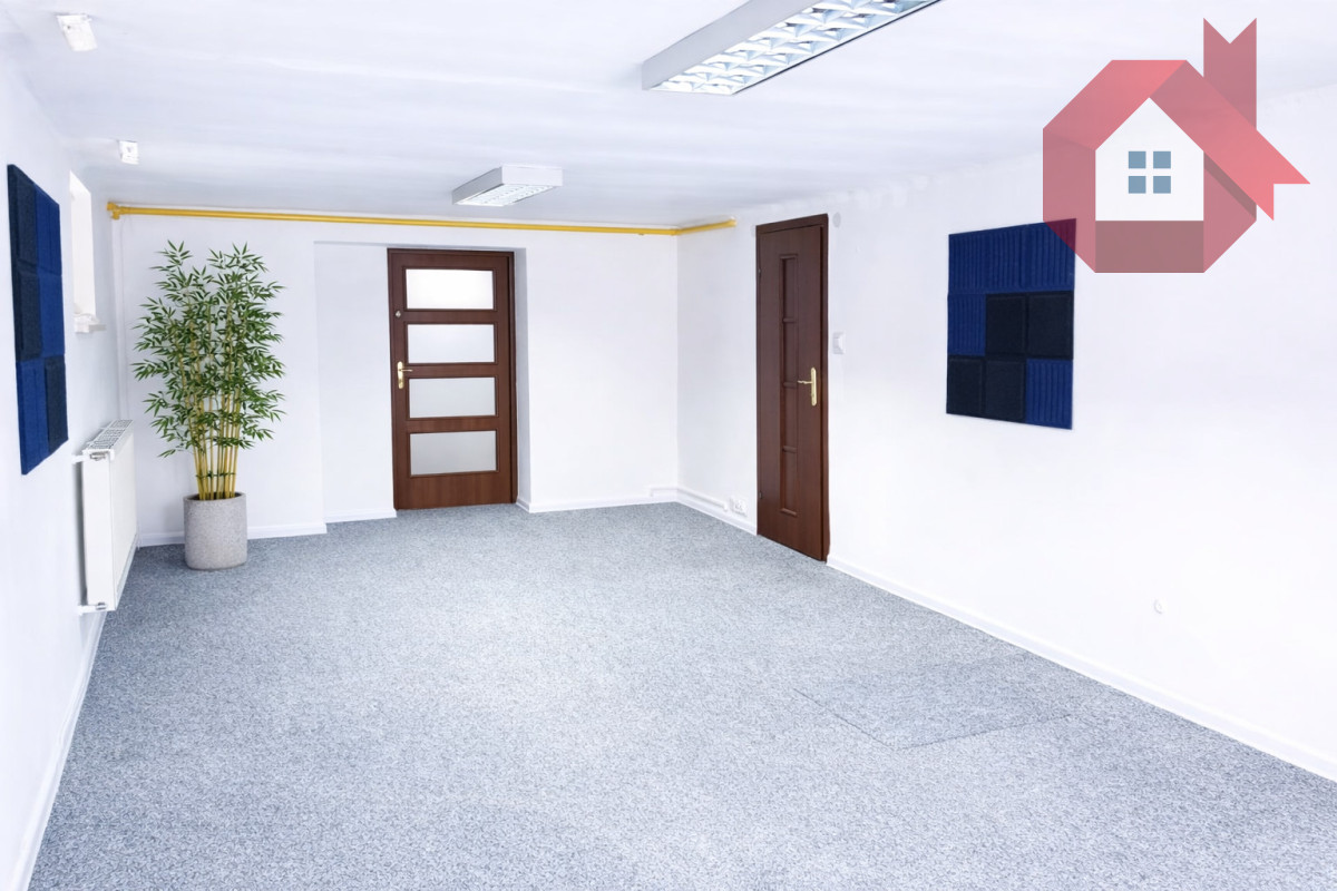 3-ch niezależnych pokoi z dwoma wejściami od frontu i jednym wejściem od zaplecza: możliwość wykorzystania przestrzeni na recepcję, gabinety, większej sali na kilka stanowisk komputerowych lub do innych celów wg życzenia. Do dyspozycji najemcy jest łazienka z WC, przestrzeń kuchenna oraz dodatkowe 2 pomieszczenia gospodarcze pełniące funkcję magazynu lub zaplecza.