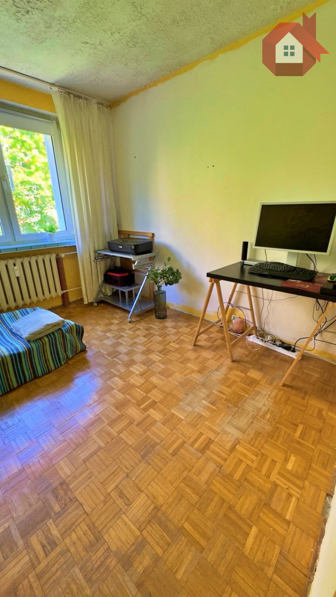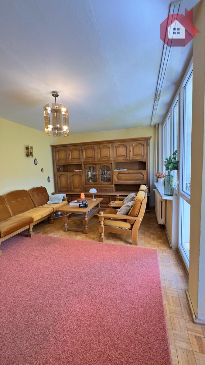 - Obecnie - przestronny salon (ok. 20 m²) z wyjściem na loggię, dwa niezależne pokoje, jasna kuchnia (możliwa do przerobienia), łazienka i osobne WC