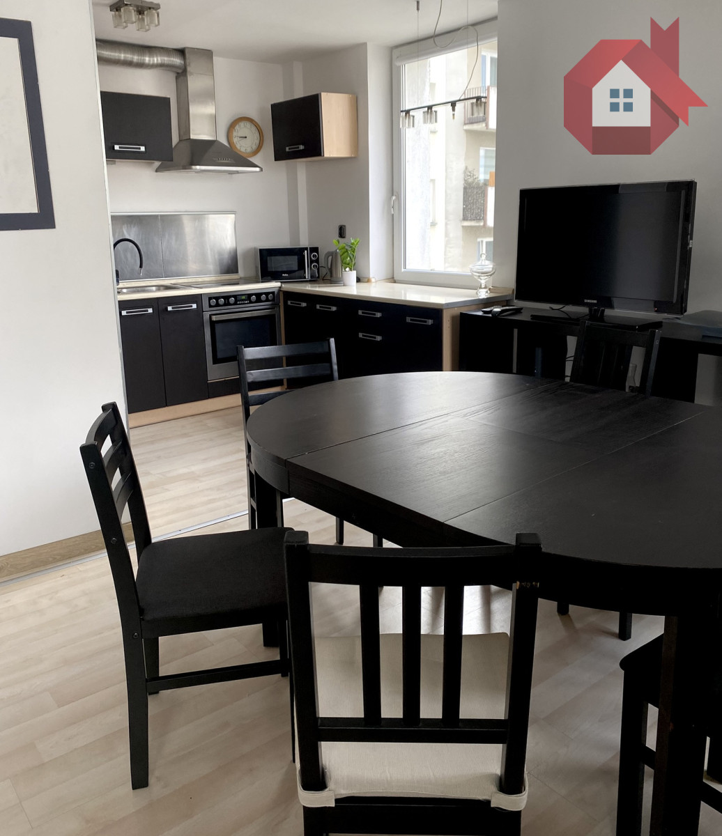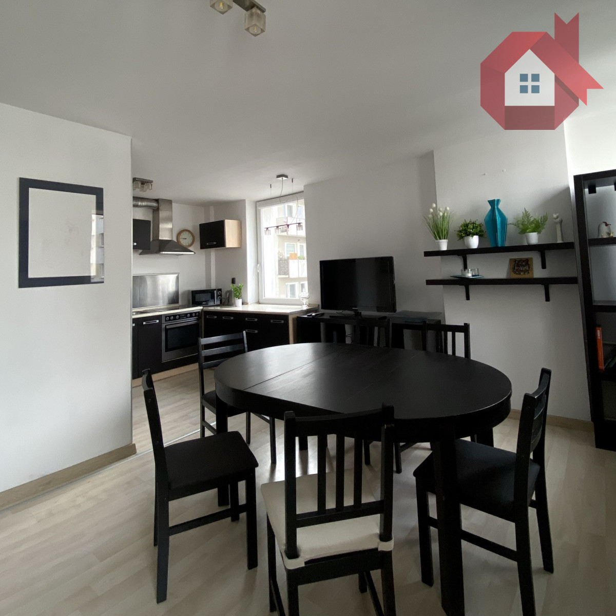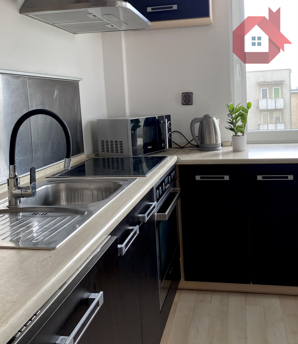 Wnętrze jest ciepłe i przyjazne, urządzone z dbałością o komfort codziennego życia. W salonie znajduje się wygodna sofa, stół z krzesłami i telewizor. Kuchnia jest w doskonałym stanie, w pełni wyposażona w niezbędny sprzęt AGD - kuchenkę, piekarnik, lodówkę, pralkę i zmywarkę. Dwie sypialnie zapewniają funkcjonalną przestrzeń do pracy i wypoczynku.