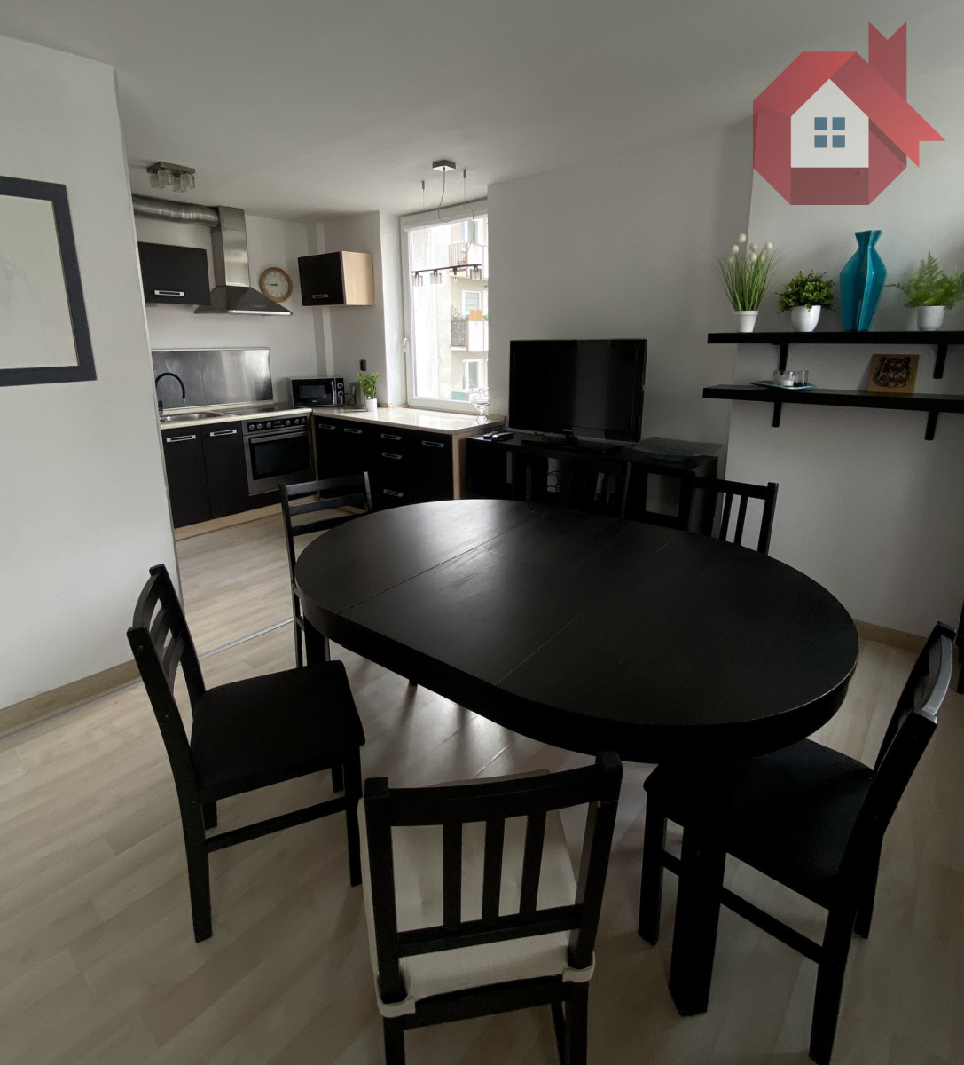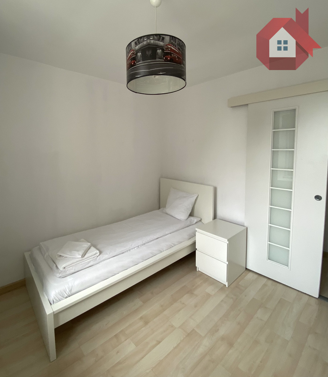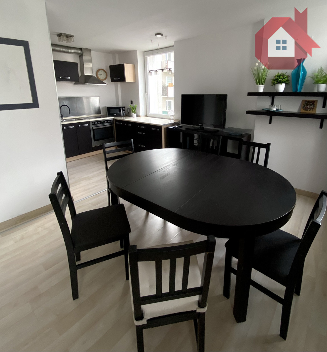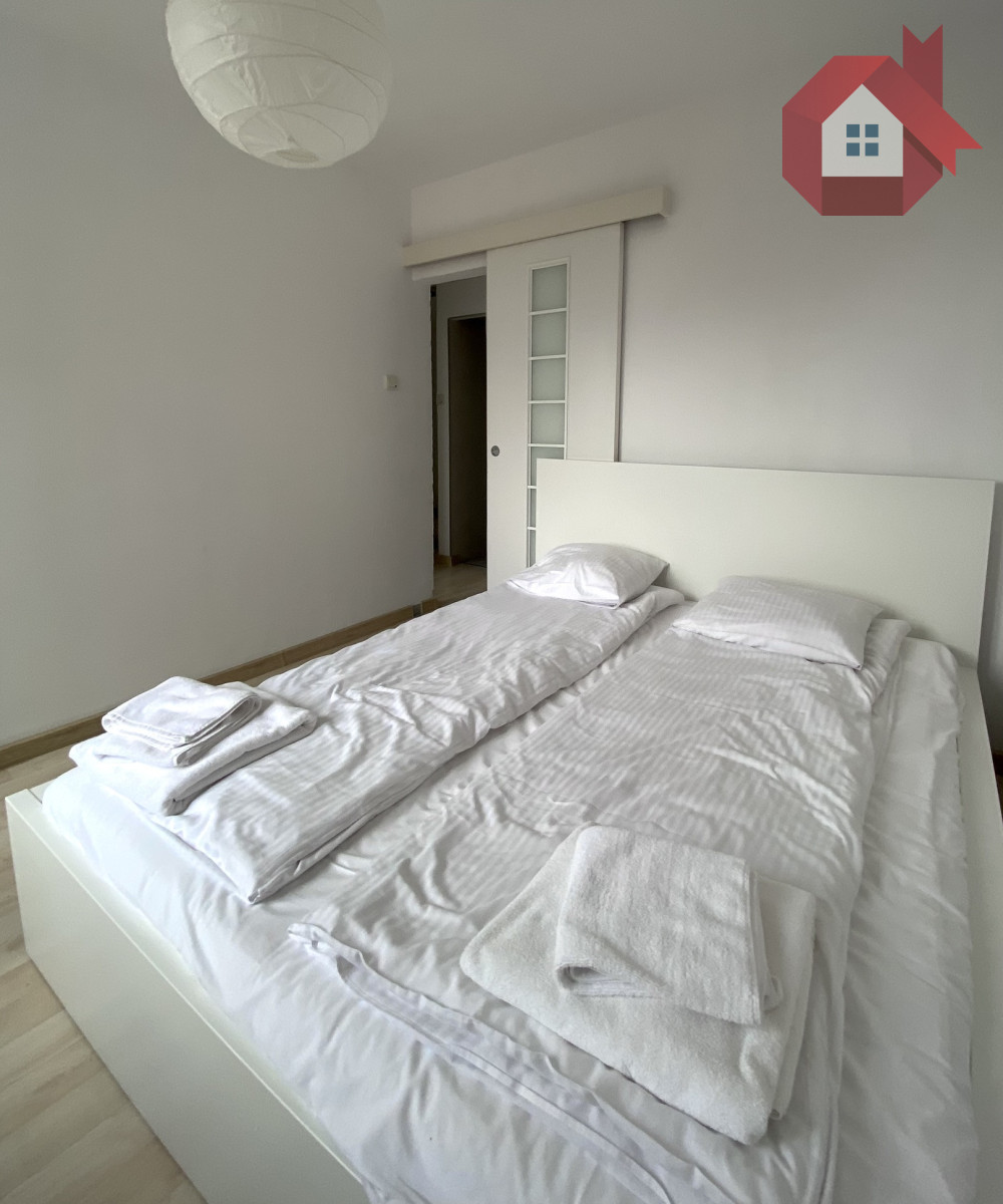 Wnętrze jest ciepłe i przyjazne, urządzone z dbałością o komfort codziennego życia. W salonie znajduje się wygodna sofa, stół z krzesłami i telewizor. Kuchnia jest w doskonałym stanie, w pełni wyposażona w niezbędny sprzęt AGD - kuchenkę, piekarnik, lodówkę, pralkę i zmywarkę. Dwie sypialnie zapewniają funkcjonalną przestrzeń do pracy i wypoczynku.