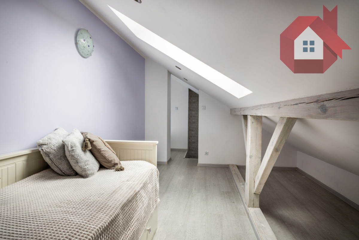 Na drewnianej antresoli z imponującym sufitem i krokwiami:- sypialnię główną z łóżkiem małżeńskim oraz oknami umożliwiającymi podziwianie wschodów słońca i rozgwieżdżonego nieba nocą - bezcenne!