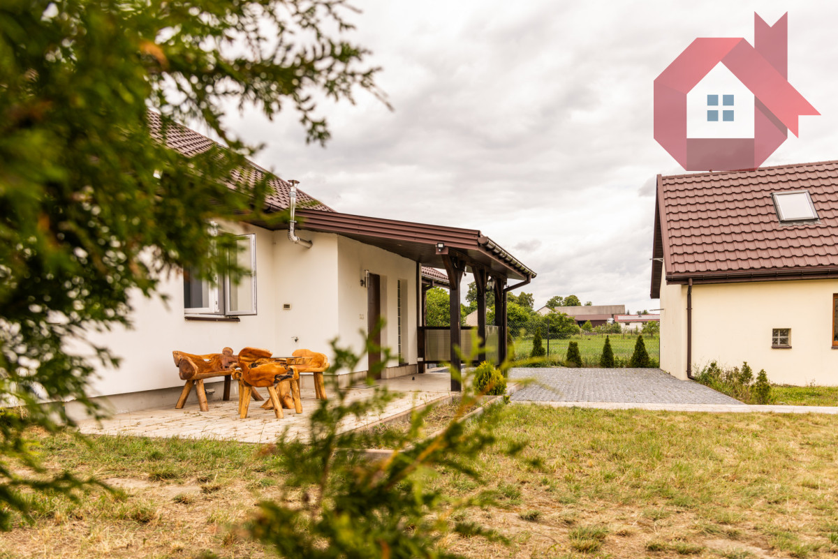 (||) Stylowy domek gościnny z zadaszonym, wyłożonym kostką tarasem grillowym o pow. ok. 120m2 - samodzielny, zapewniający prywatność obiekt, w którym znajdziemy: